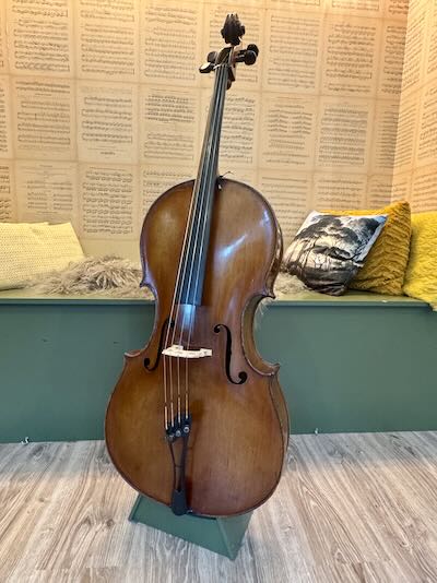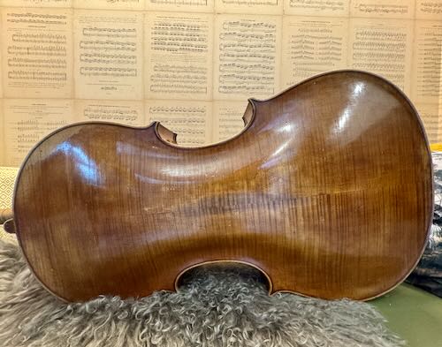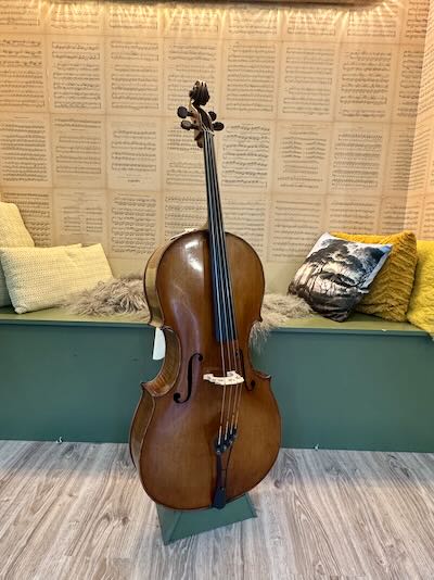 Deze prachtige Atelier Robin cello is een uniek oud Frans instrument met een groot helder volume, een nobel geluid, een chique cello. Hij is voorzien van een Frirsz staartstuk dat niet meer verkrijgbaar is in Europa. Dit staartstuk maakt dat de cello zijn klankkleuren optimaal laat horen en is tegelijkertijd ook een wolfdoder. Zoek je een cello waarmee je gehoord kunt worden zonder een schreeuwer te zijn? Deze Franse cello blijft een ‘heer’.